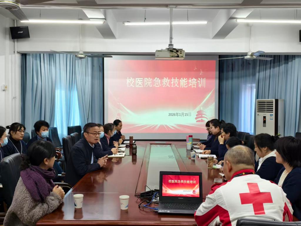 为筑牢校园健康安全防线,后勤管理处校医院于2026年1月15日至16日邀请济南市红十字会应急救援队,开展了为期两天的应急救护专项培训活动。后勤管理处处长张承业出席培训并讲话,他对校医院组织此次培训给予肯定和支持,也向济南市红十字会专家表达了诚挚感谢。校医院全体在职人员全员参加培训。