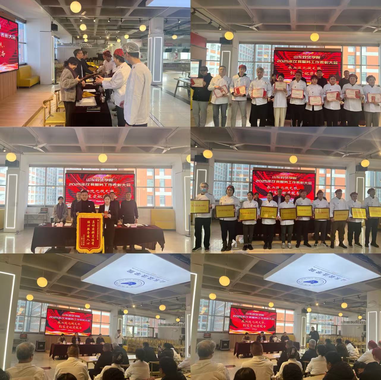 1月15日下午,后勤管理处在三食堂三楼举行2025年度饮食服务工作表彰大会。后勤管理处处长张承业出席会议并讲话,副处长张慧宣读《关于表彰2025年食堂管理中心优秀集体、优秀服务窗口及优秀个人的通报》,副处长张德峰主持会议,后勤管理处领导班子成员及食堂管理中心全体人员参加此次会议。